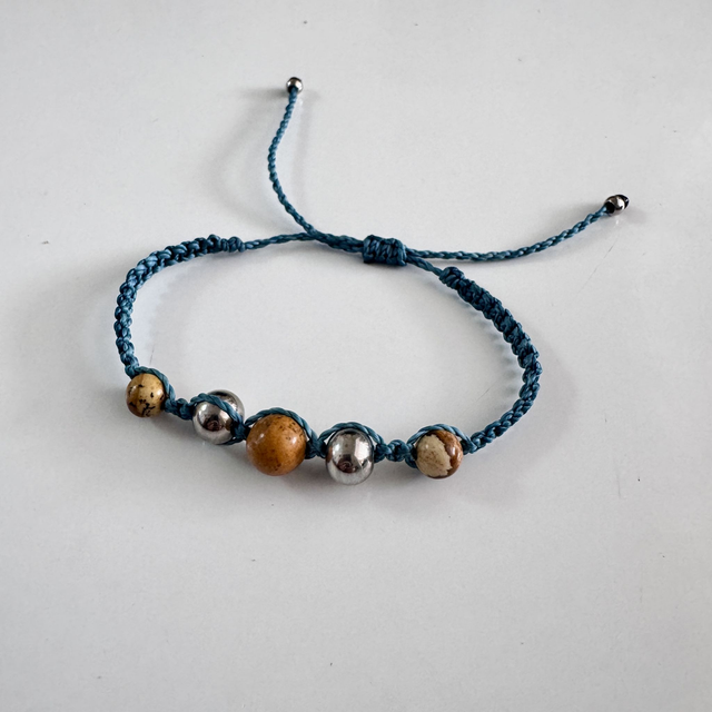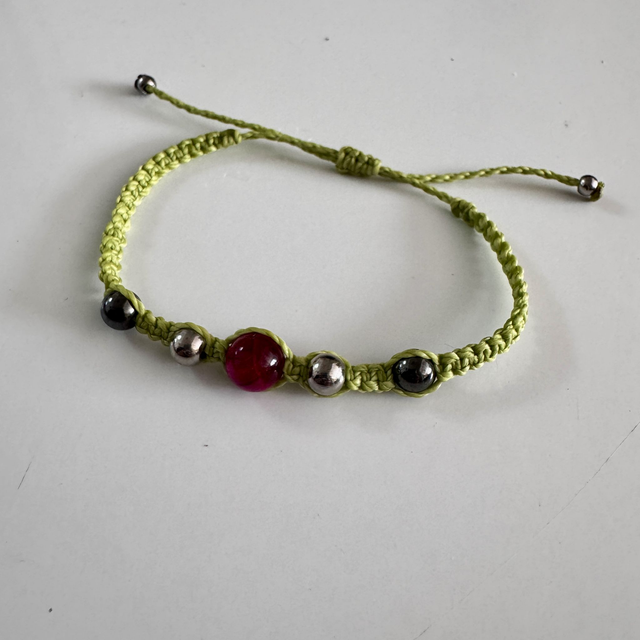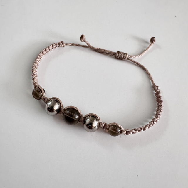Le bracelet Lucile est un bijou en micro-macramé tissé à la main selon la technique du point plat. Chaque exemplaire est une pièce unique, réalisée dans mon atelier avec des matériaux soigneusement sélectionnés.